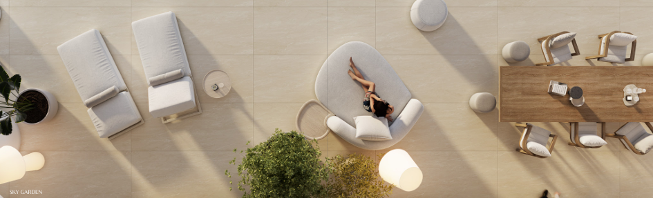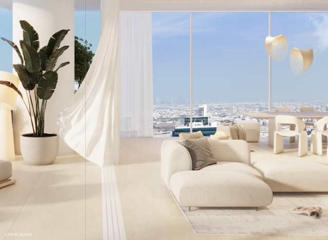 Each home is meticulously crafted with open-plan living and dining areas, 3.2-meter floor-to-ceiling windows, and expansive five-meter sky gardens offering breathtaking panoramic views of Dubai’s skyline. Interiors showcase Italian Pedini social kitchens, premium Miele appliances, elegant travertine finishes, and spa-inspired bathrooms fitted with smart mirrors and high-end Kohler and Hansgrohe fixtures.